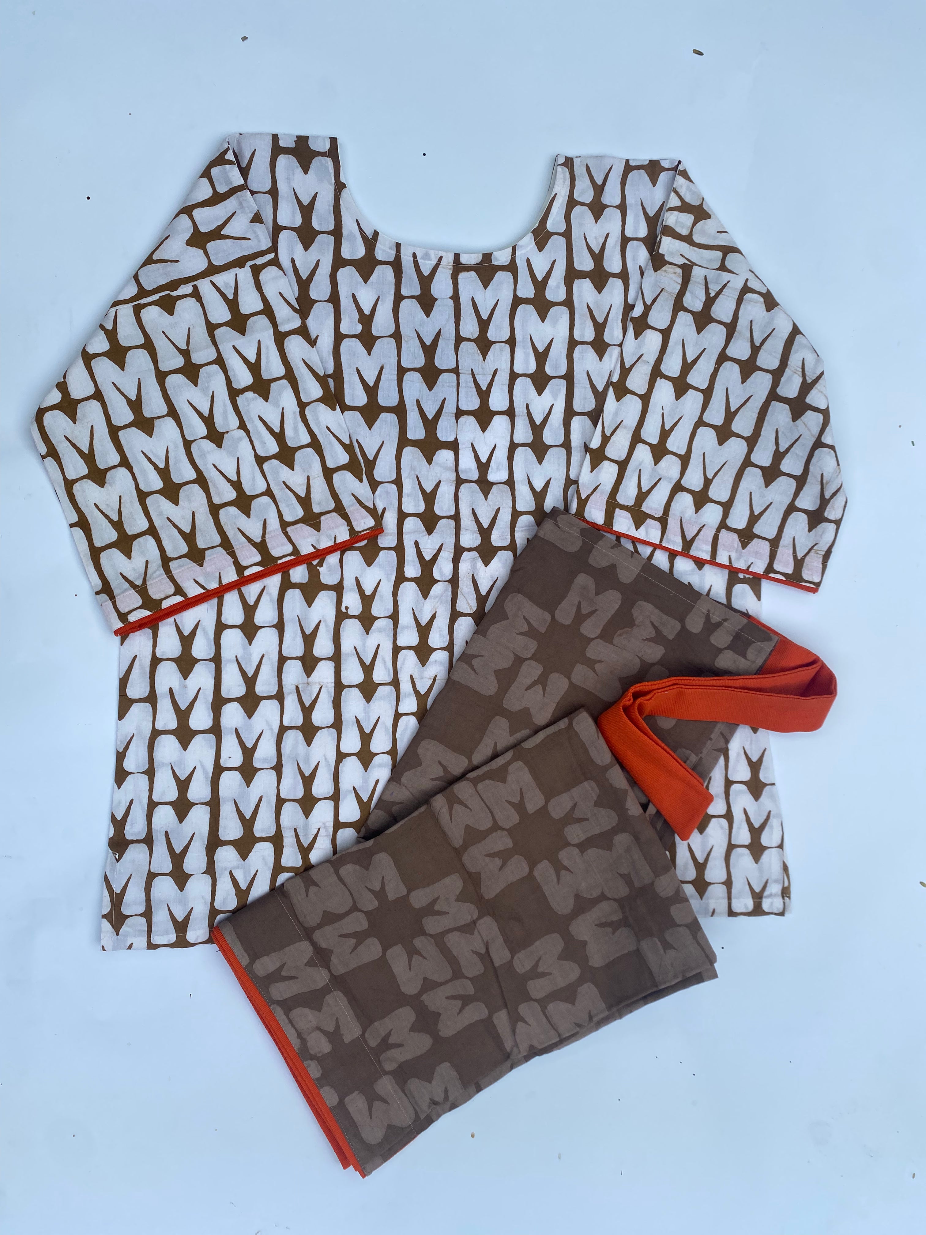 M Ladder Brown & White Iro & Buba